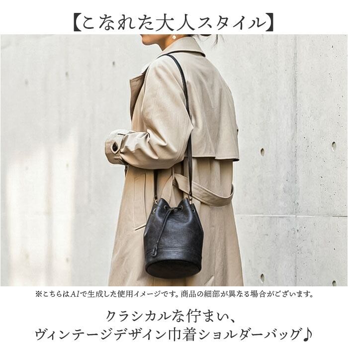 ・クラシカルな佇まい、ヴィンテージデザイン巾着ショルダーバッグ♪