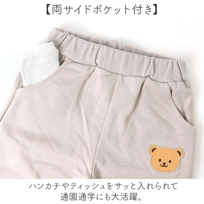 ・トップスとパンツにあるクマさんのワッペンがワンポイント。愛らしい表情に思わずほっこり。