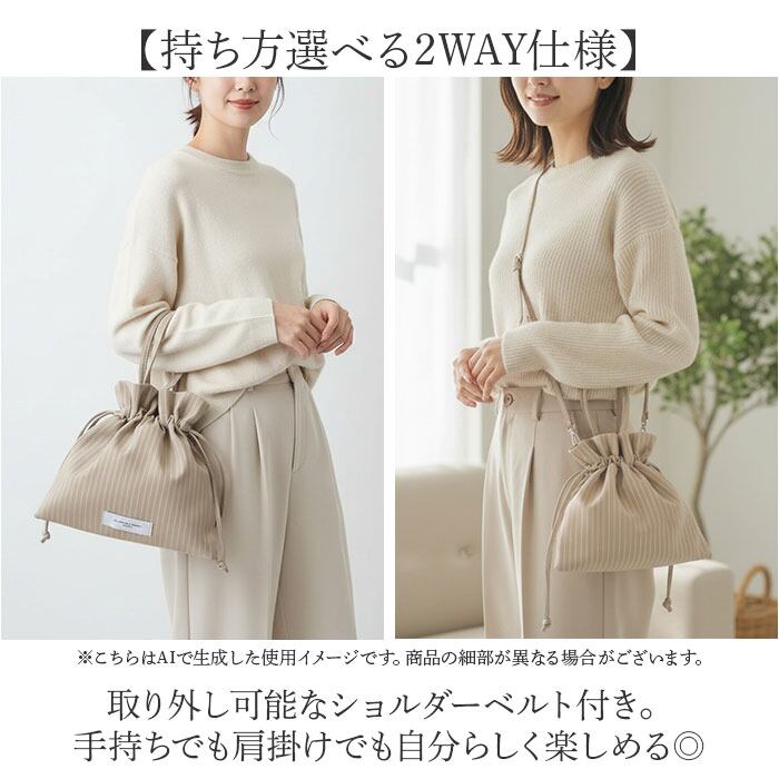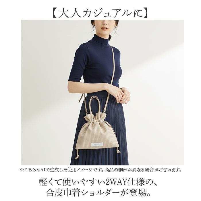 ・軽くて使いやすい2WAY仕様の、合皮巾着ショルダーが登場。