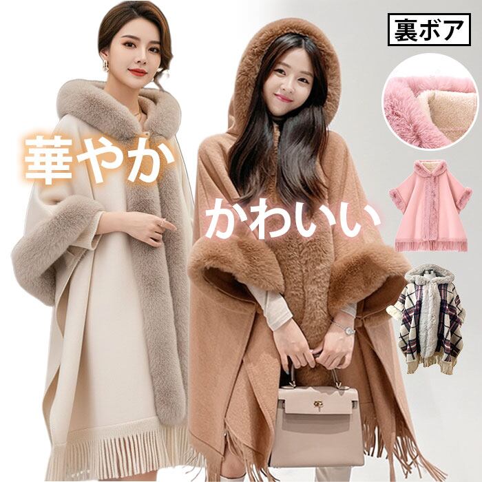 ポンチョ コート ファー 通販 ポンチョ風コート ポンチョコート ケープコート マント ケープ アウター 羽織 ショール カーディガン レディース あったか 裏ボア 暖かい 秋冬 通勤 秋 冬 ギフト 体型カバー かわいい おしゃれ
