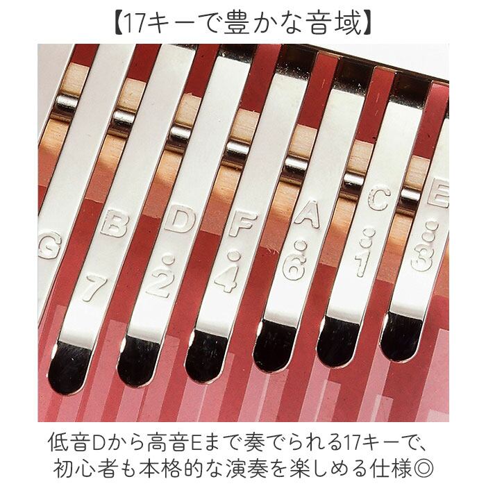 ・低音Dから高音Eまで奏でられる17キーで、初心者も本格的な演奏を楽しめる仕様◎