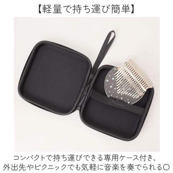 ・指先で奏でる癒しの音色、アクリルの透明感が美しい17キーカリンバ