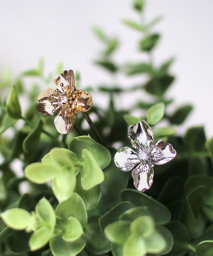 ・ゴールドとシルバーの2色から選べて、どちらもシンプルでありながら存在感抜群!まるで本物の花びらのように、ふわっと広がるデザインが素敵です。
