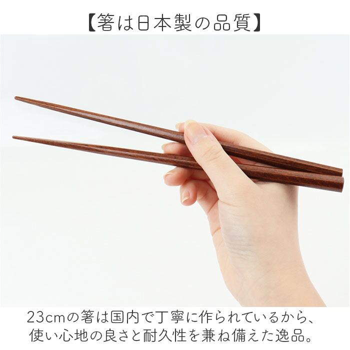 23cmの箸は国内で丁寧に作られているから、使い心地の良さと耐久性を兼ね備えた逸品。