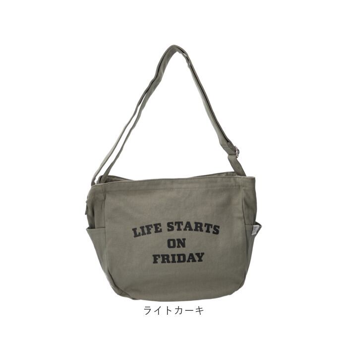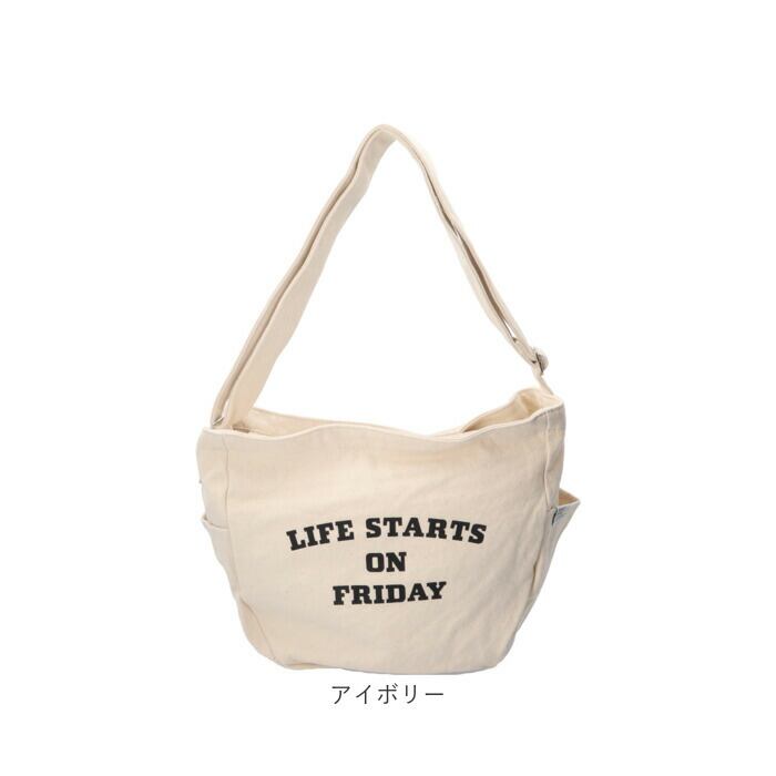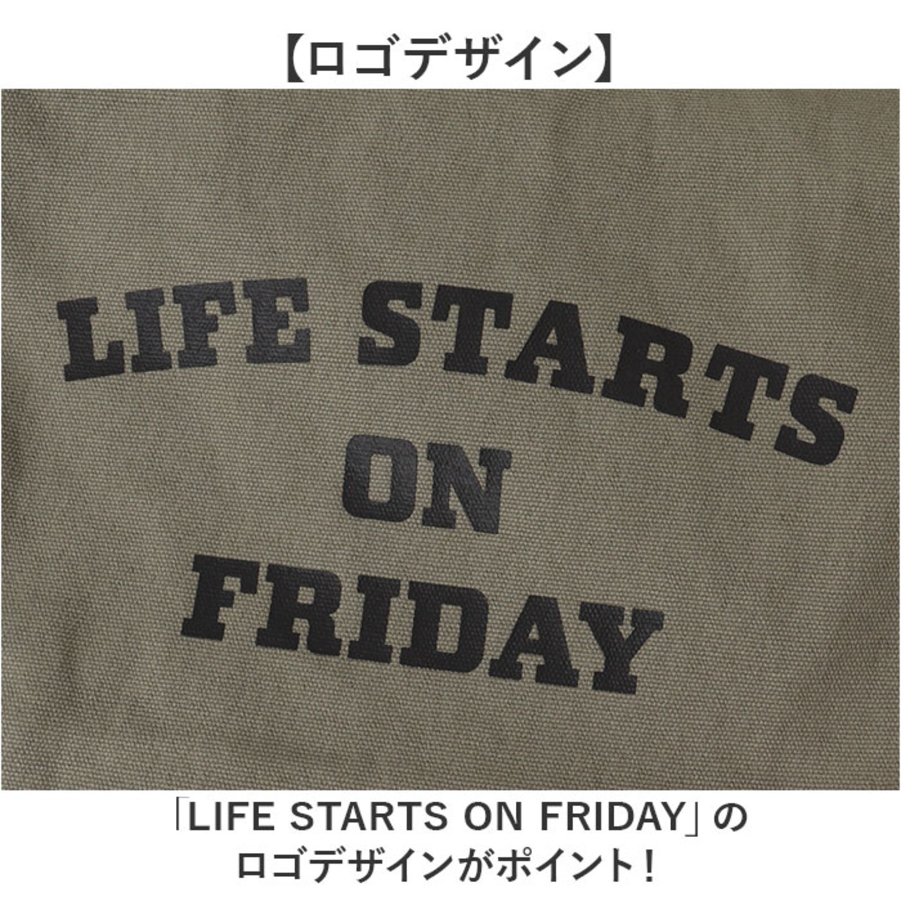 「LIFE STARTS ON FRIDAY」のロゴデザインがポイント!