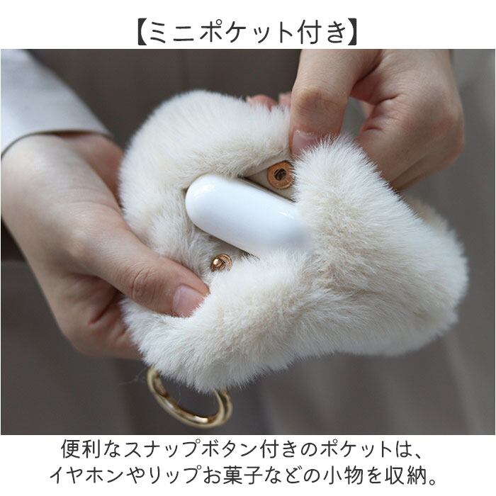 【ミニポケット付き】便利なスナップボタン付きのポケットは、イヤホンやリップお菓子などの小物を収納。
