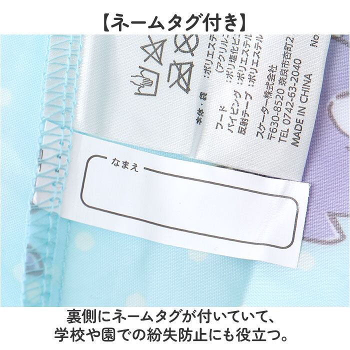 ・裏側にネームタグが付いていて、学校や園での紛失防止にも役立つ。