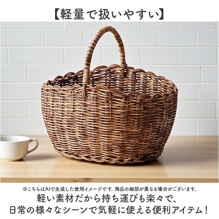 かご 持ち手付き 通販 かごバスケット バスケット 収納かご カゴ 籠 収納バスケット 収納ボックス 小物入れ 収納 ピクニックバスケット お手入れ簡単 持ち手つき 持ち手 ハンドル付き ワンハンドル 軽い 軽量 水濡れに強い 収納用品 ピクニック
