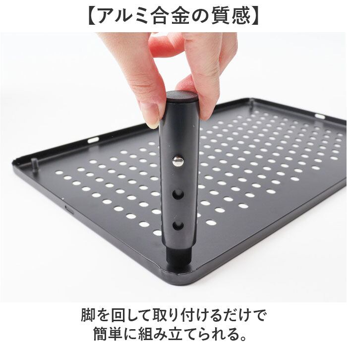 ・脚を回して取り付けるだけで簡単に組み立てられる。