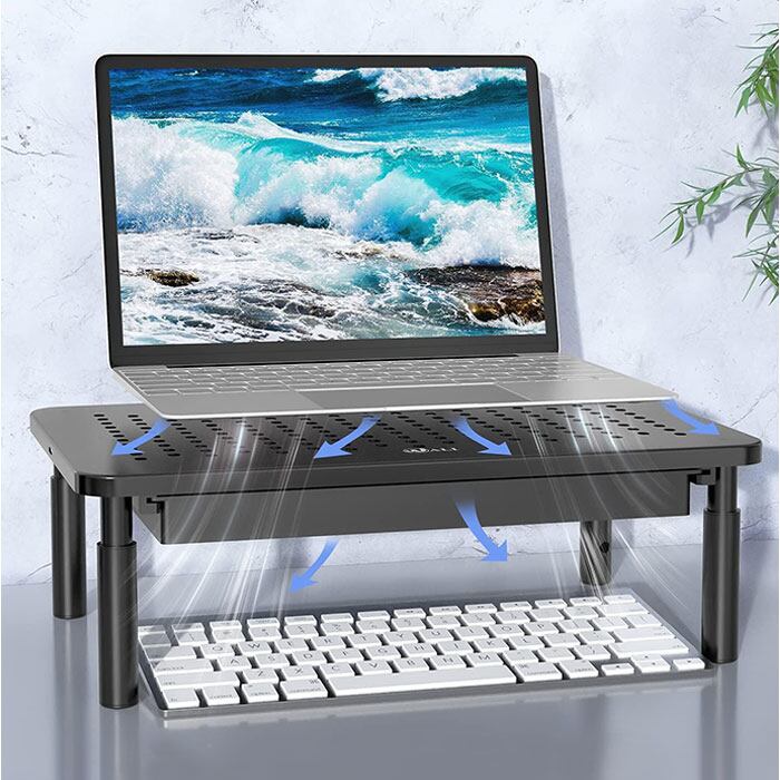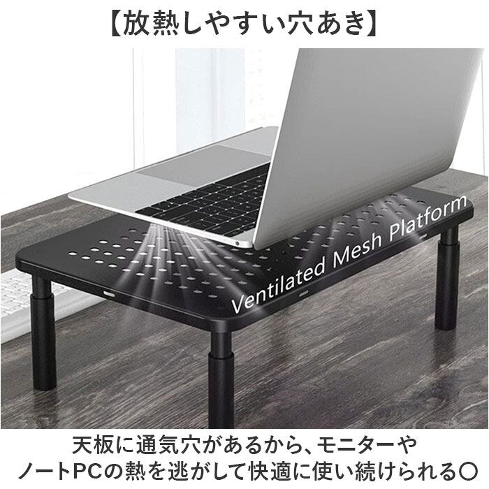 ・天板に通気穴があるから、モニターやノートPCの熱を逃がして快適に使い続けられる〇