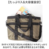 ・B4サイズ対応で約24Lの収納力!マチがしっかりあるので、外出に必要な荷物をまとめて収納。