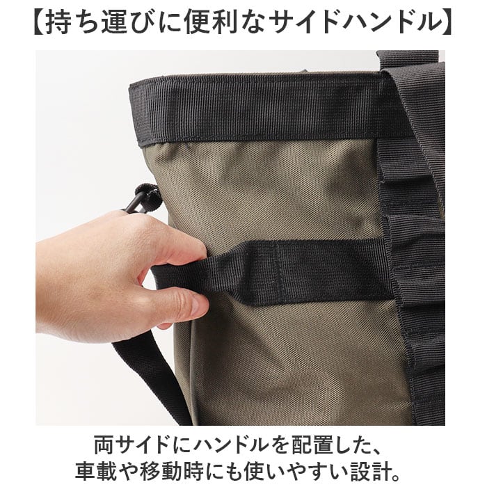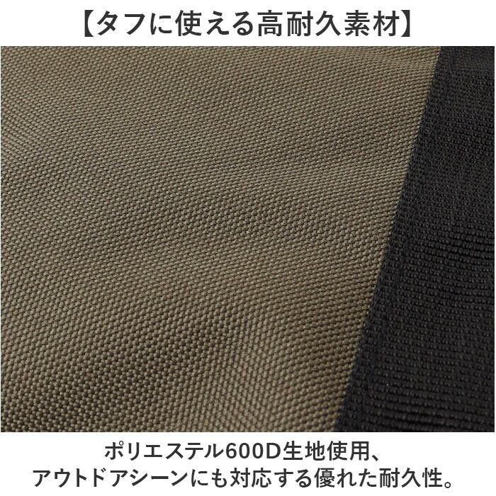 ・ポリエステル600D生地使用、アウトドアシーンにも対応する優れた耐久性。