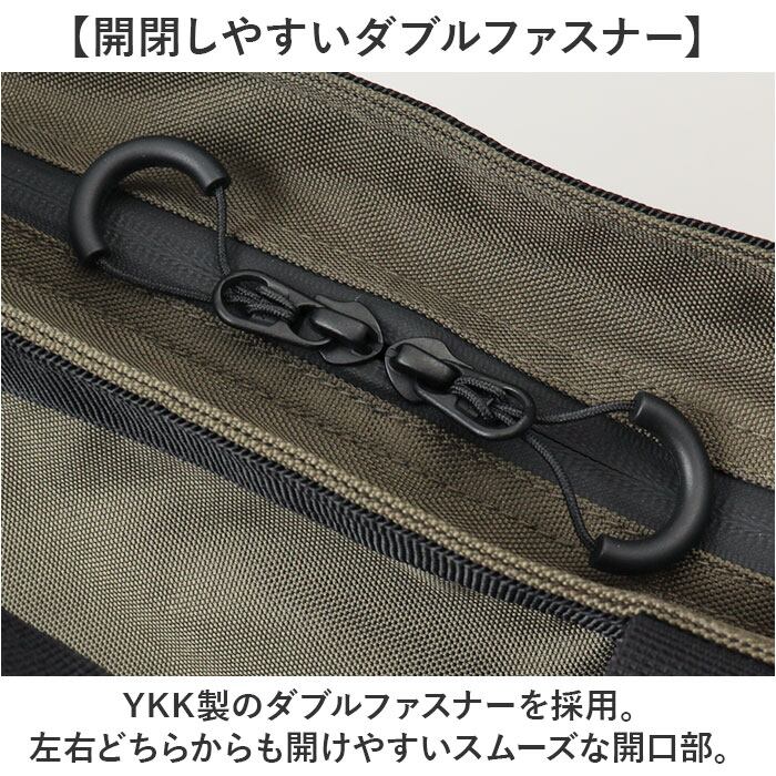 ・YKK製のダブルファスナーを採用。左右どちらからも開けやすいスムーズな開口部。