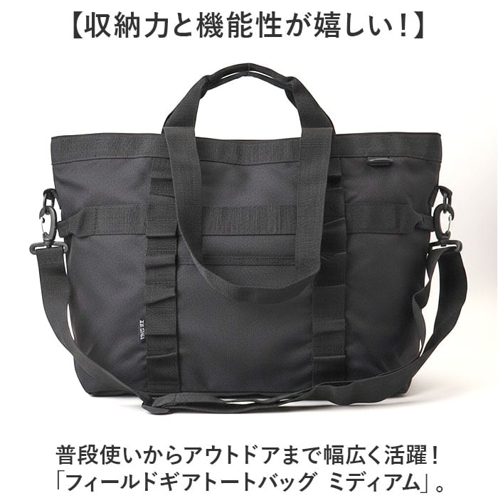 ・普段使いからアウトドアまで幅広く活躍!「フィールドギアトートバッグ ミディアム」。