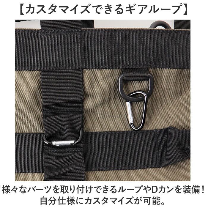 ・様々なパーツを取り付けできるループやDカンを装備!自分仕様にカスタマイズが可能。