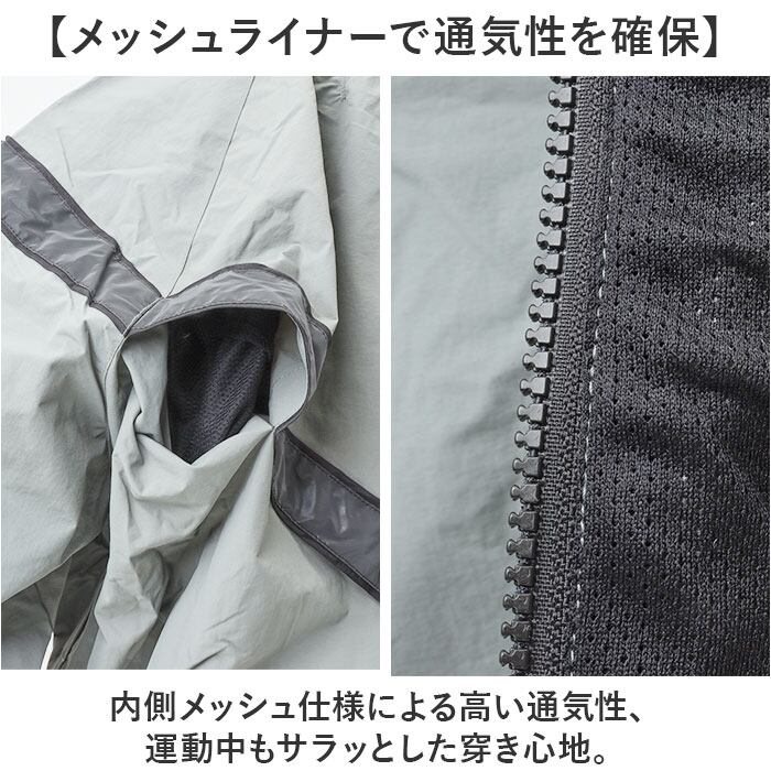 ・風や小雨をしっかりガードする撥水ナイロン生地を使用。屋外トレーニングにも対応。