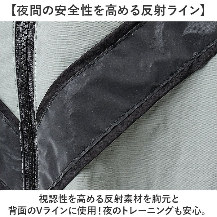 ・視認性を高める反射素材を胸元と背面のVラインに使用!夜のトレーニングも安心。
