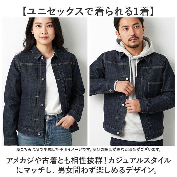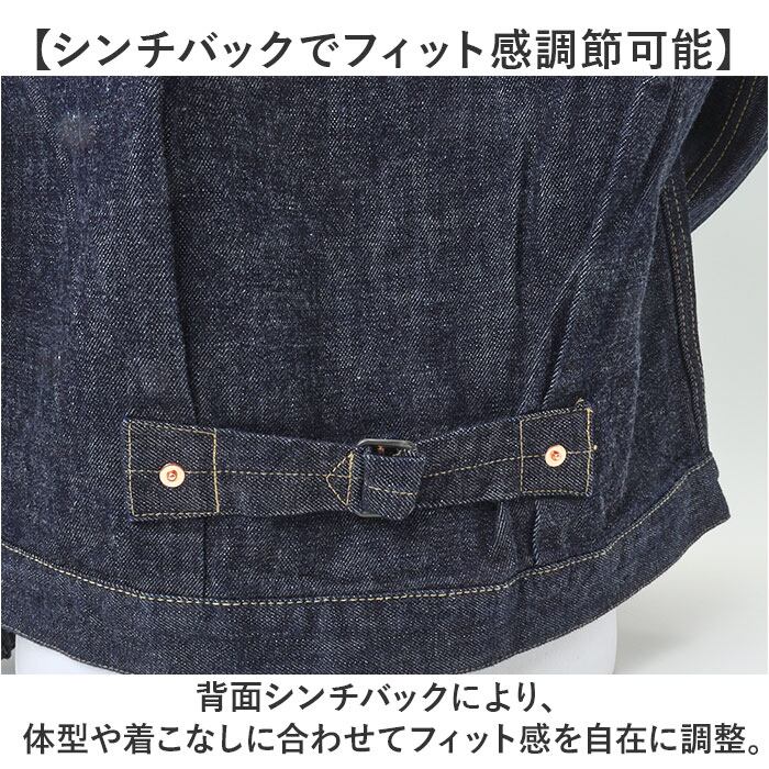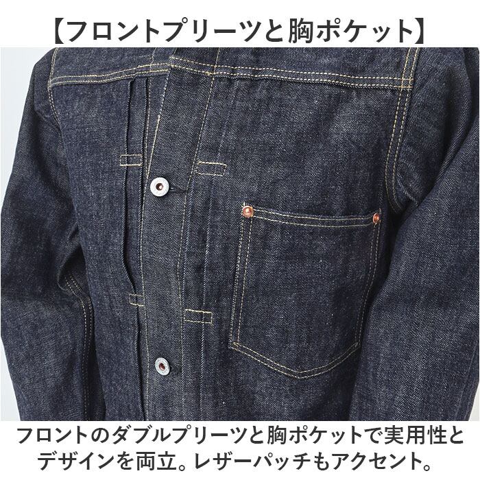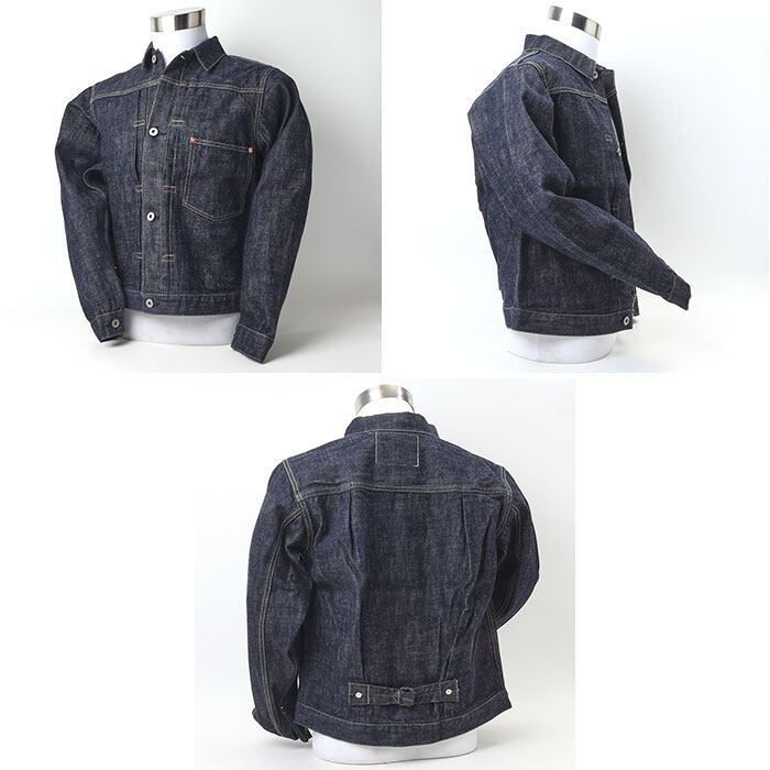 ・13.5オンスのセルビッジデニムを使用した「デニムジャケット 大戦モデル ラベルあり」。