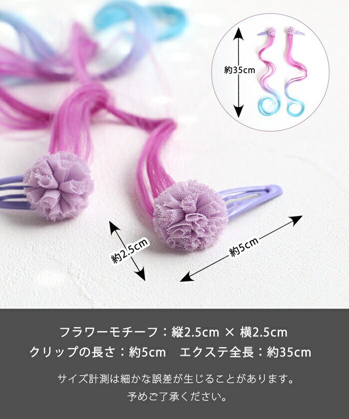フラワーモチーフ:縦2.5cm/横2.5cm/エクステ全長:約35cm