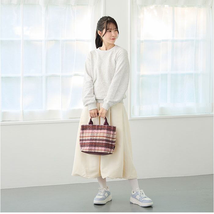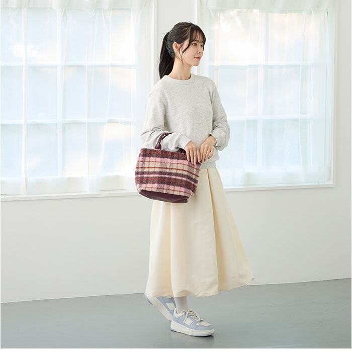 ・持ち手と底面には合皮を合わせて、カジュアルな中にもきちんと感をプラス。