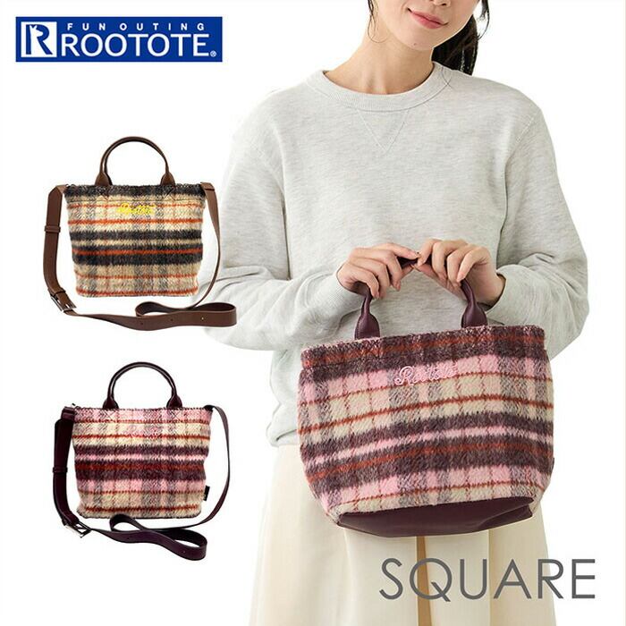 ルートート ROOTOTE ショルダーバッグ 3651 通販 ショルダーバック 斜めがけバッグ 2way トートバッグ 小さめ 通勤 通学 SQUARE スクエア チェック おしゃれ かわいい カジュアル マチあり 旅行 チェック柄 総柄 レディースバッグ
