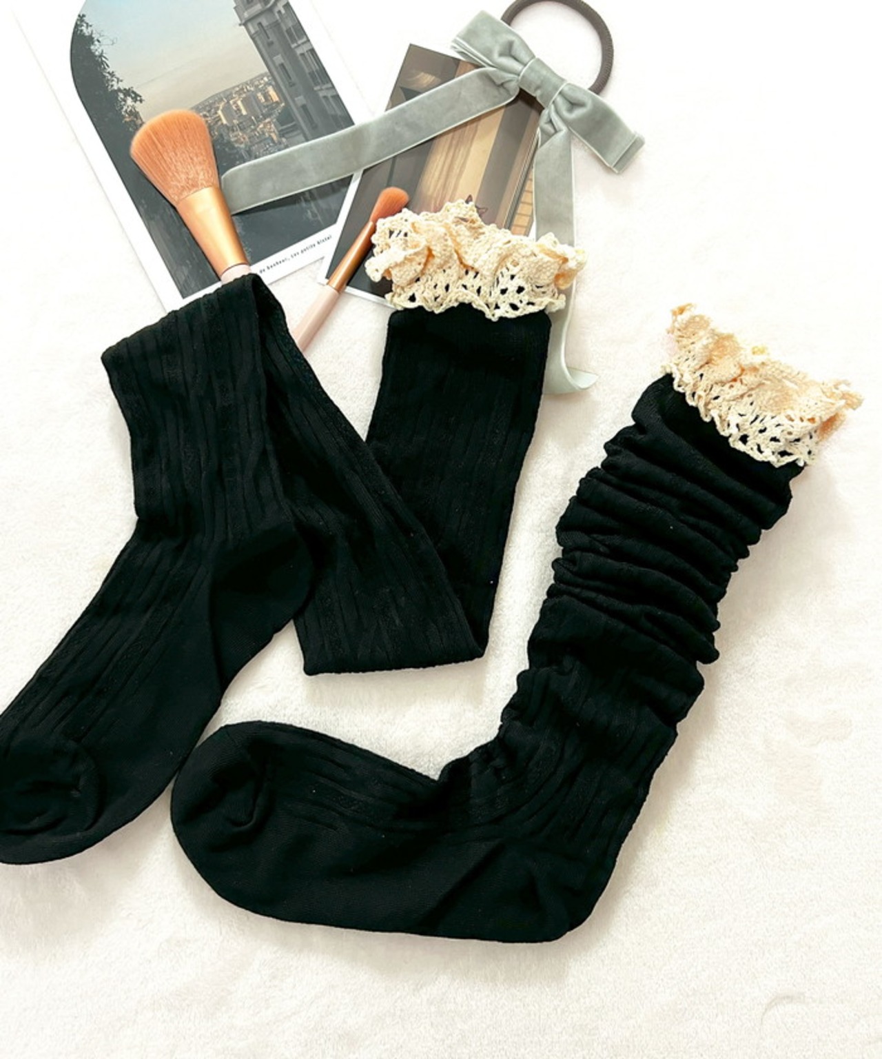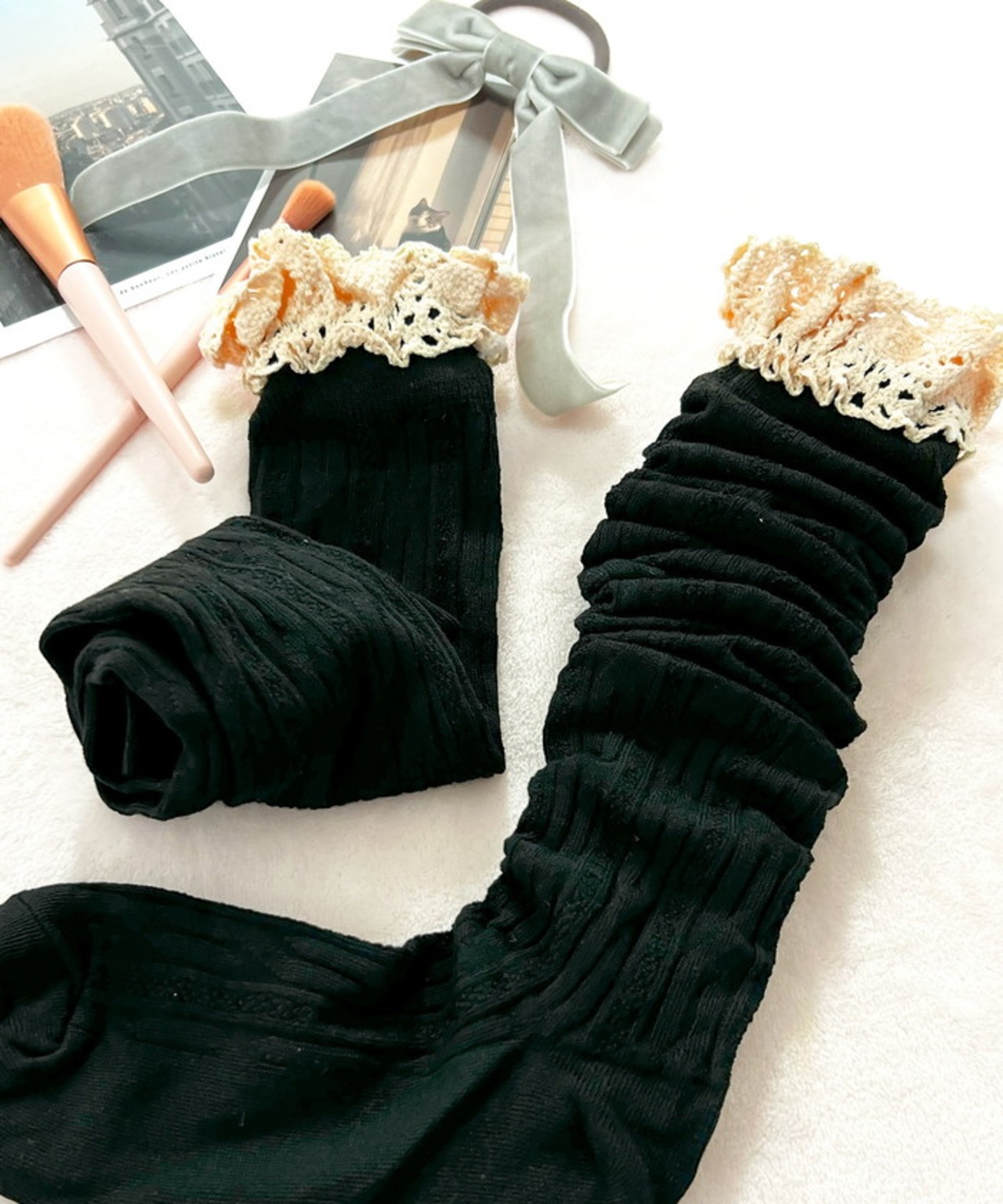 フリル付きニーハイソックス