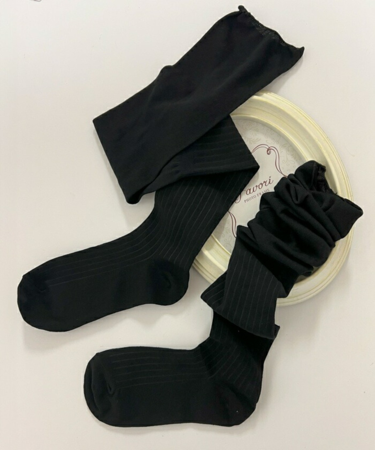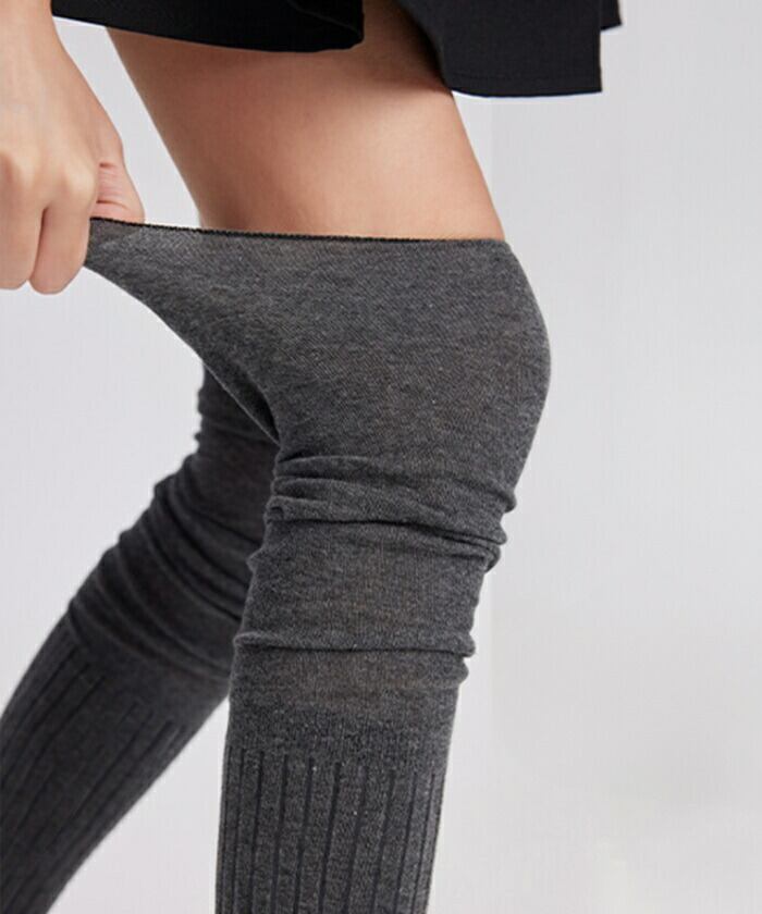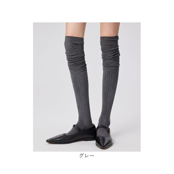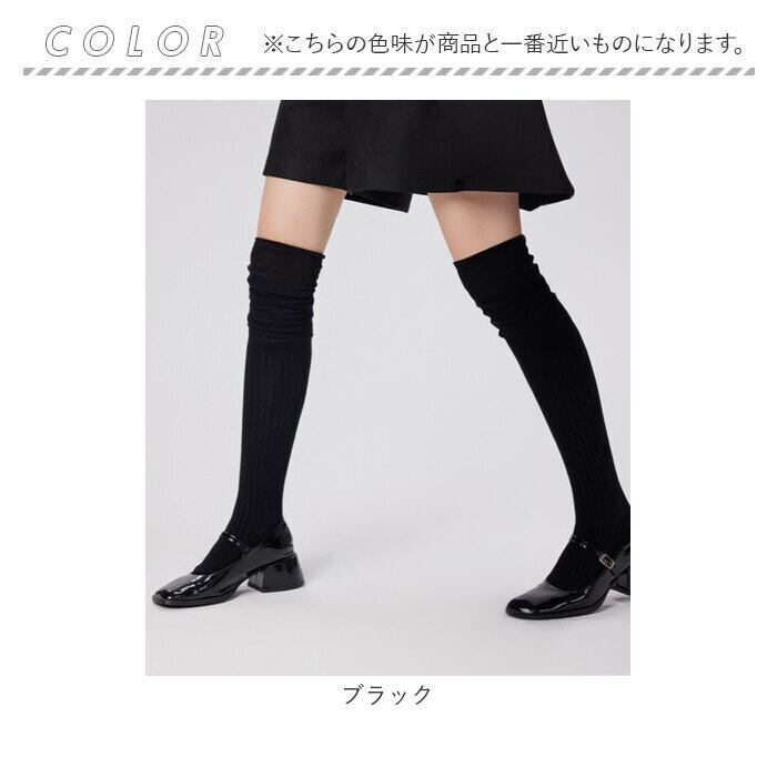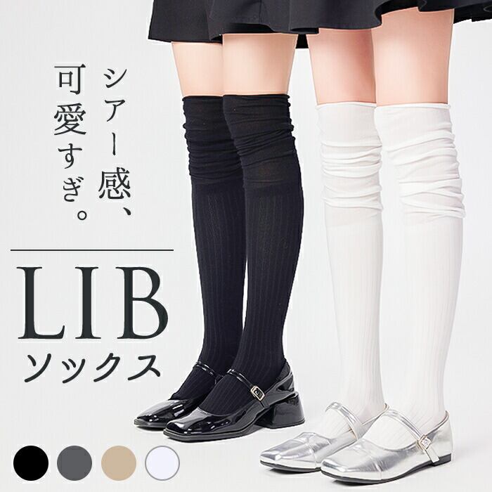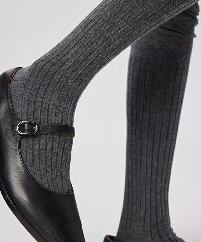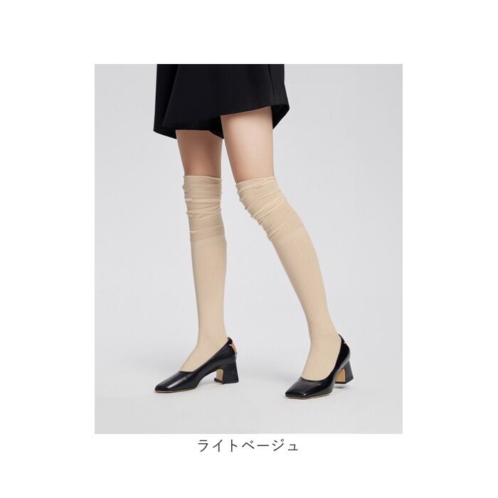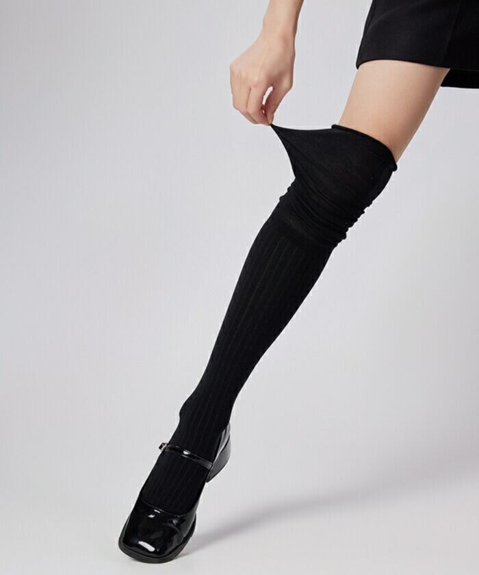 ・リブ編み×シアー素材の切り替えデザインが印象的なニーハイソックス。