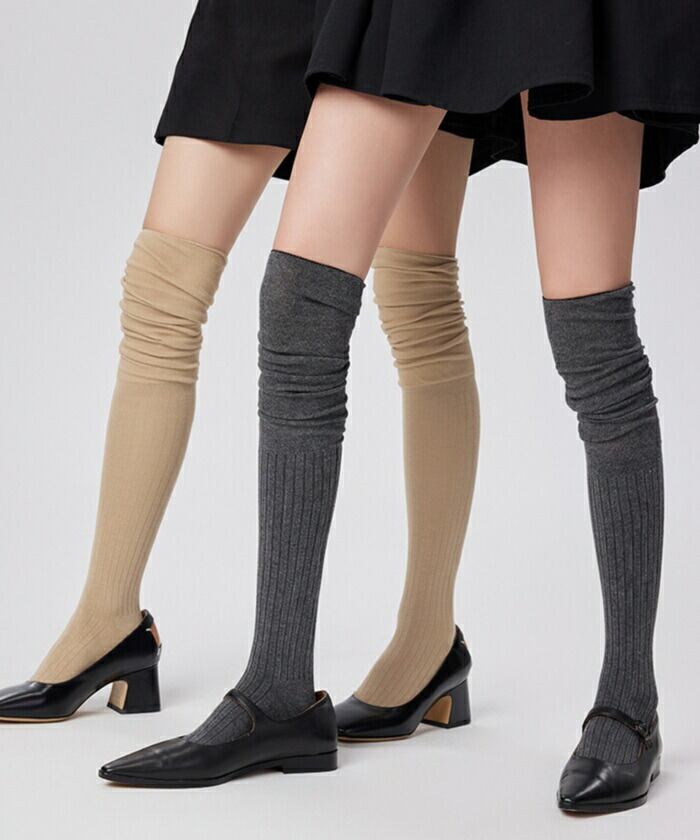 ・ミニスカートやショートパンツに合わせれば、抜け感のあるトレンドコーデが完成。