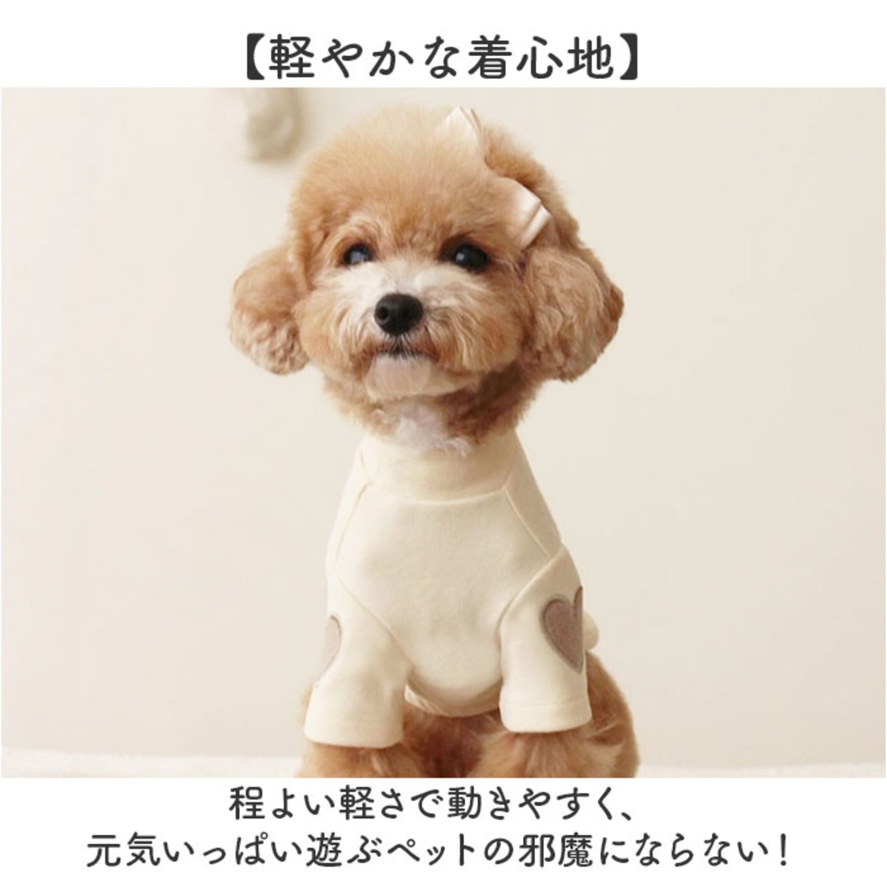 ・ポリエステル素材のやさしい肌触りで、デリケートなペットも快適に着られる。