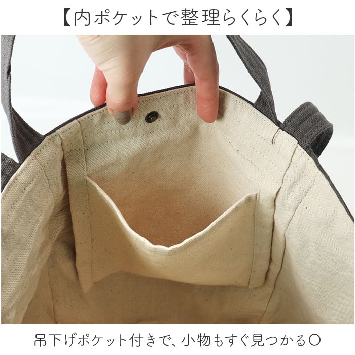 ・吊下げポケット付きで、小物もすぐ見つかる〇
