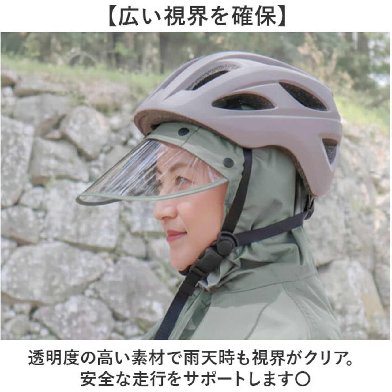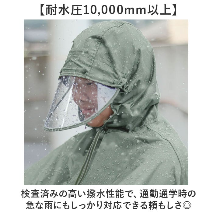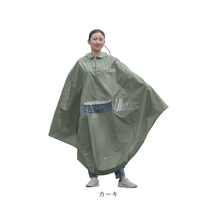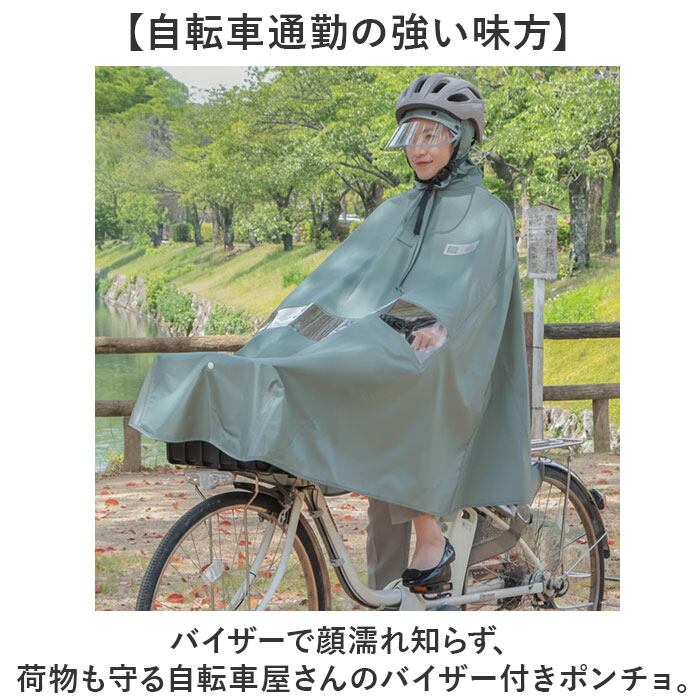 ・荷物も守る自転車屋さんのバイザー付きポンチョ。