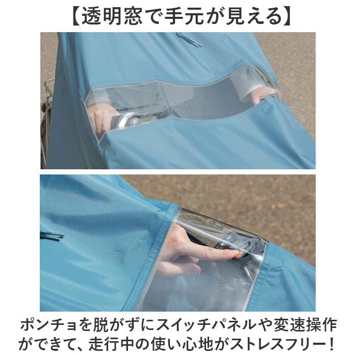 ・ポンチョを脱がずにスイッチパネルや変速操作ができて、
