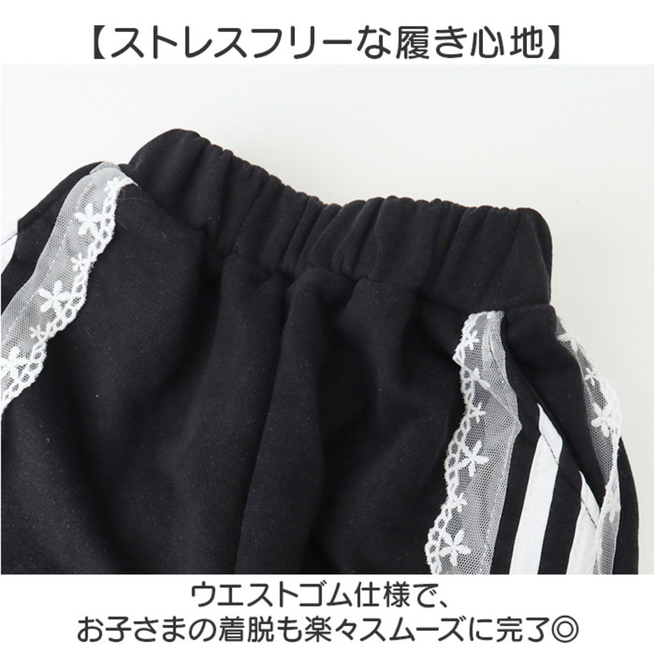 ・ウエストゴム仕様で、お子さまの着脱も楽々スムーズに完了◎