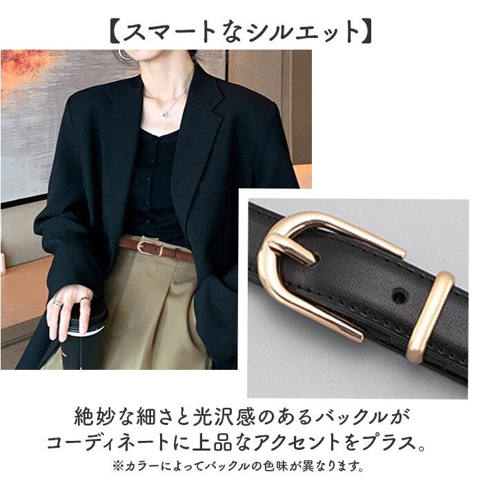 ・絶妙な細さと光沢感のあるバックルがコーディネートに上品なアクセントをプラス。※カラーによってバックルの色味が異なります。