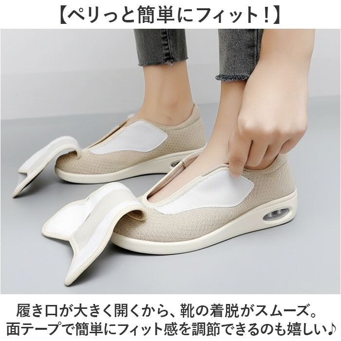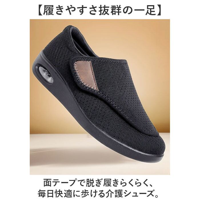 ・面テープで脱ぎ履きらくらく、毎日快適に歩ける介護シューズ。
