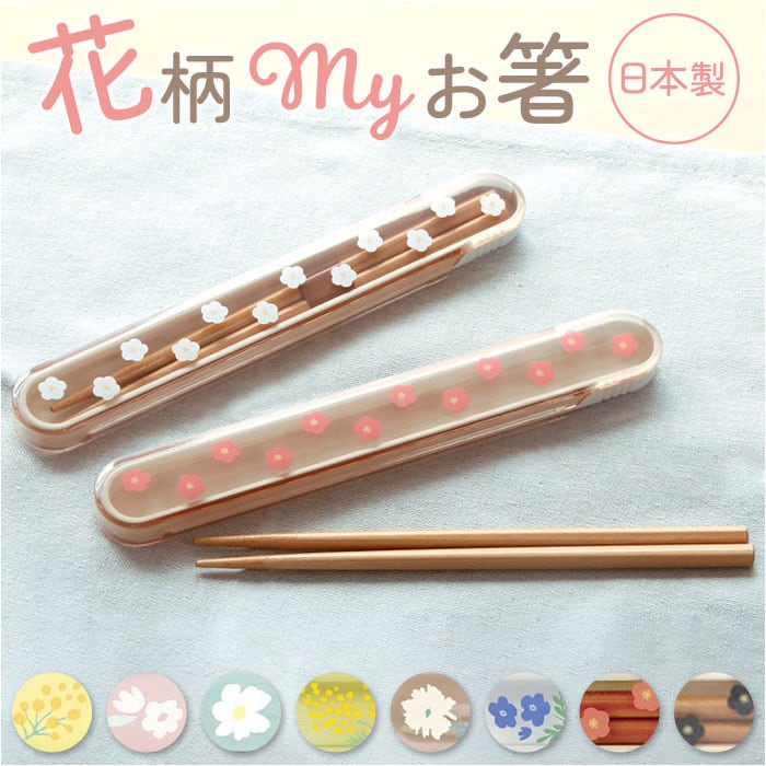 ・可愛らしい花柄がランチタイムを明るく彩ってくれる「箸・箸箱セット」