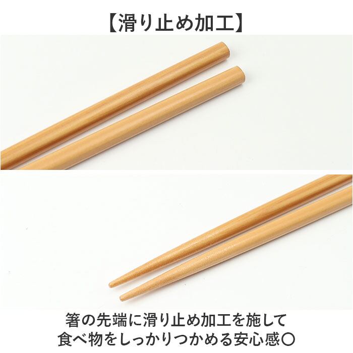 ・箸の先端に滑り止め加工を施して食べ物をしっかりつかめる安心感〇