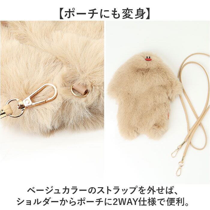 ・ベージュカラーのストラップを外せば、ショルダーからポーチに2WAY仕様で便利。