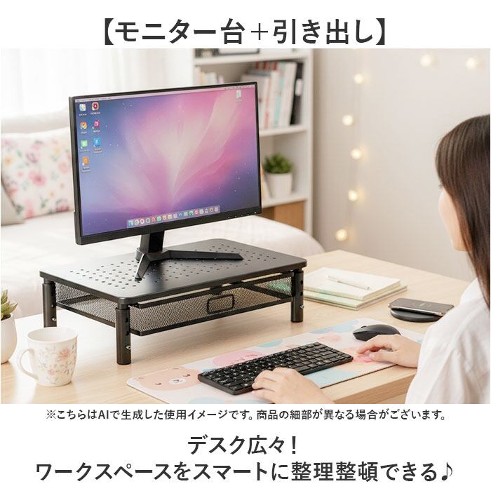 ・モニター下や引き出しに、機器や小物を収納してデスクを快適に使える◎