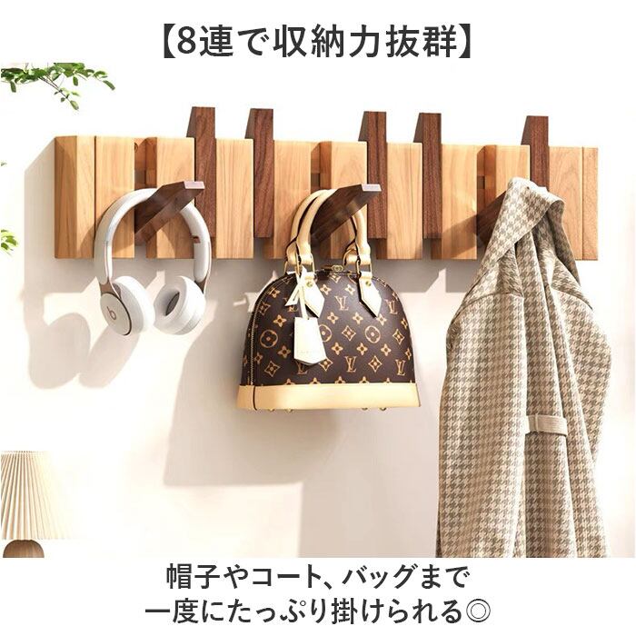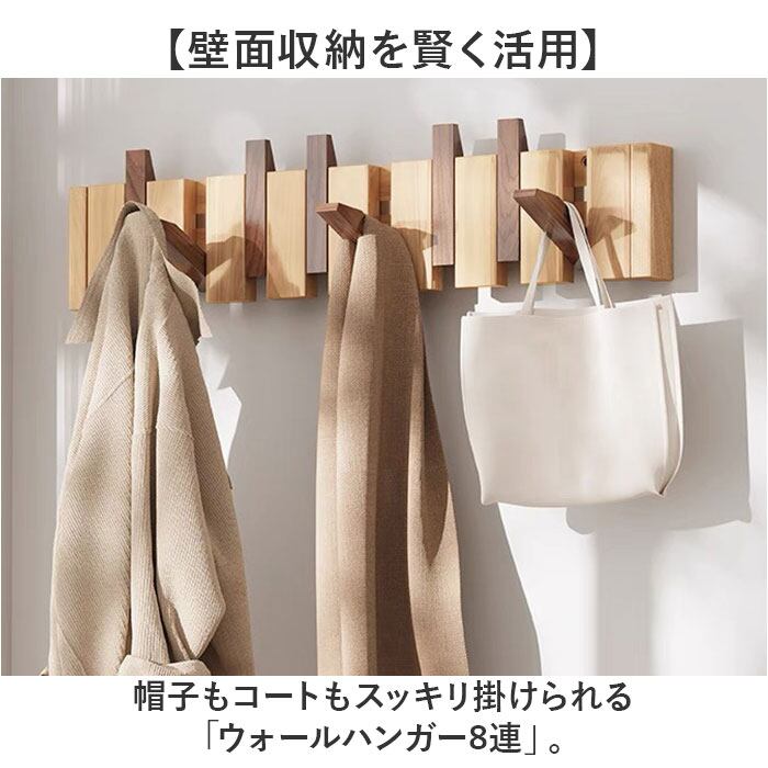 ・帽子もコートもスッキリ掛けられる「ウォールハンガー8連」。