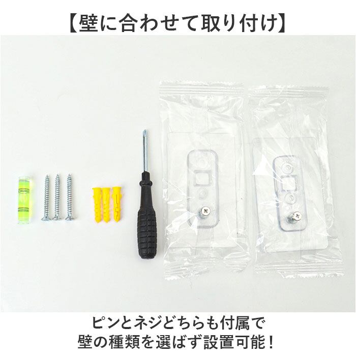 ・ピンとネジどちらも付属で壁の種類を選ばず設置可能!