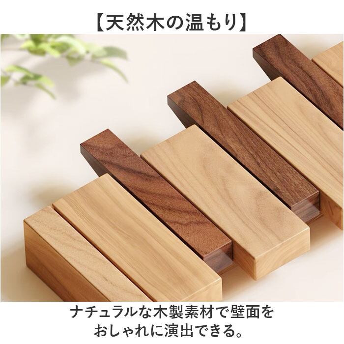 ・ナチュラルな木製素材で壁面をおしゃれに演出できる。