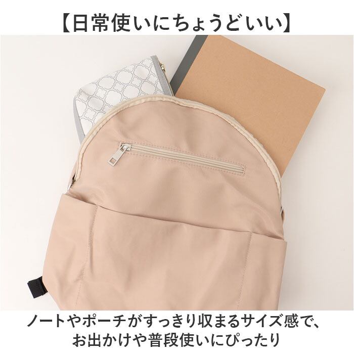 ・ノートやポーチがすっきり収まるサイズ感で、お出かけや普段使いにぴったり。
