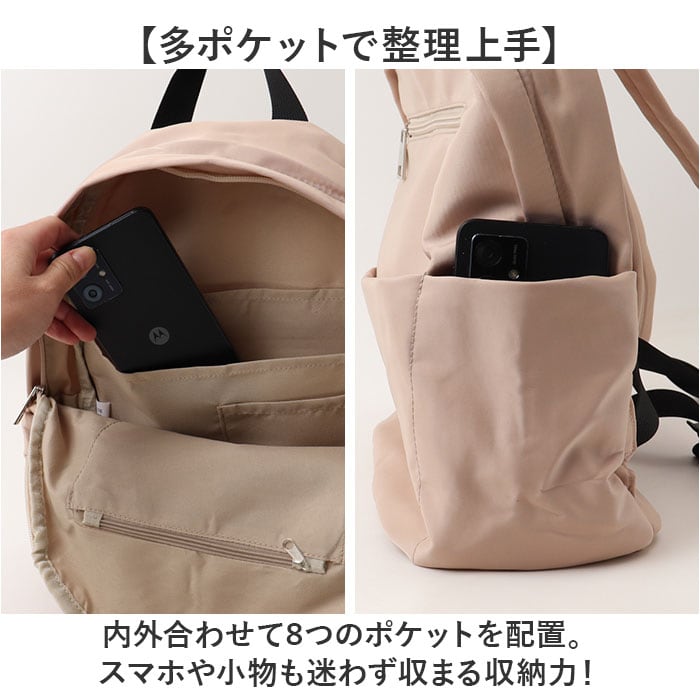 ・内外合わせて8つのポケットを配置。スマホや小物も迷わず収まる収納力!