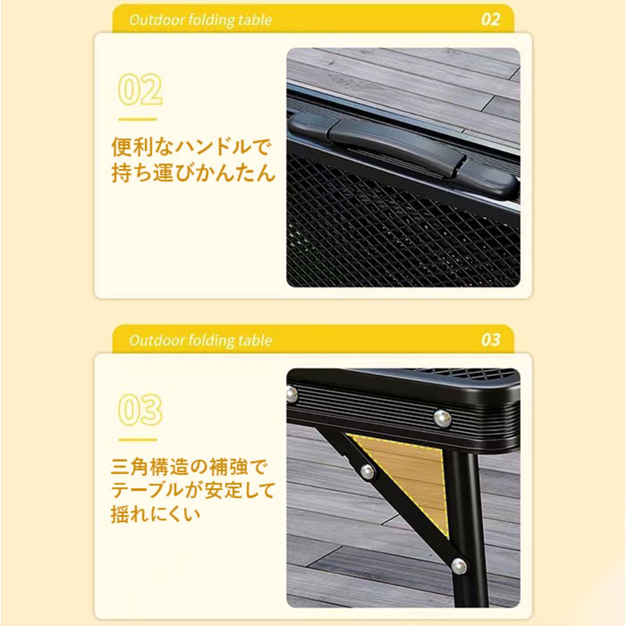 ・コンパクト収納で持ち運び楽々、便利な折り畳みテーブル。