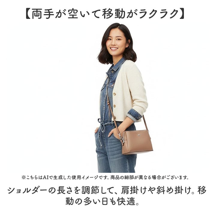 ・ショルダーの長さを調節して、肩掛けや斜め掛け。移動の多い日も快適。