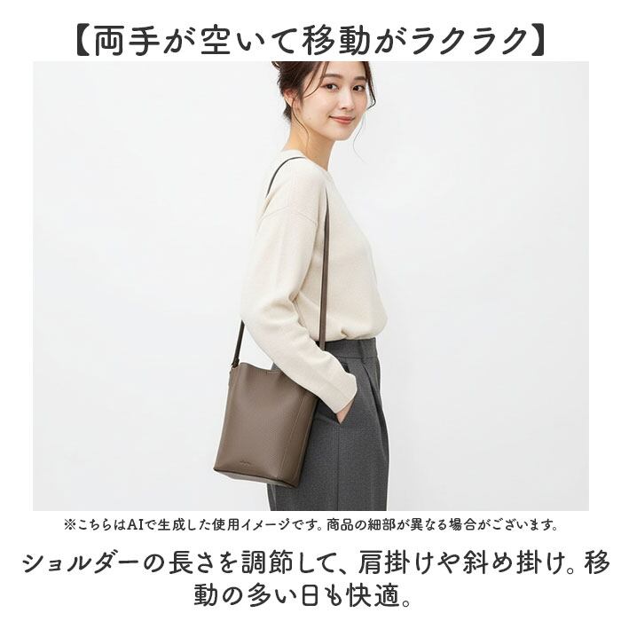 ・ショルダーの長さを調節して、肩掛けや斜め掛け。移動の多い日も快適。
