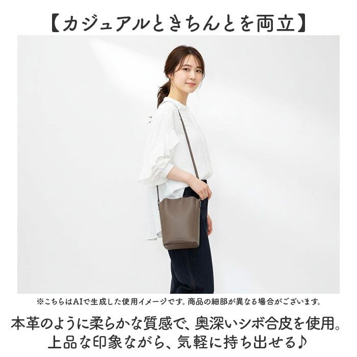 ・本革のように柔らかな質感で、奥深いシボ合皮を使用。上品な印象ながら、気軽に持ち出せる♪