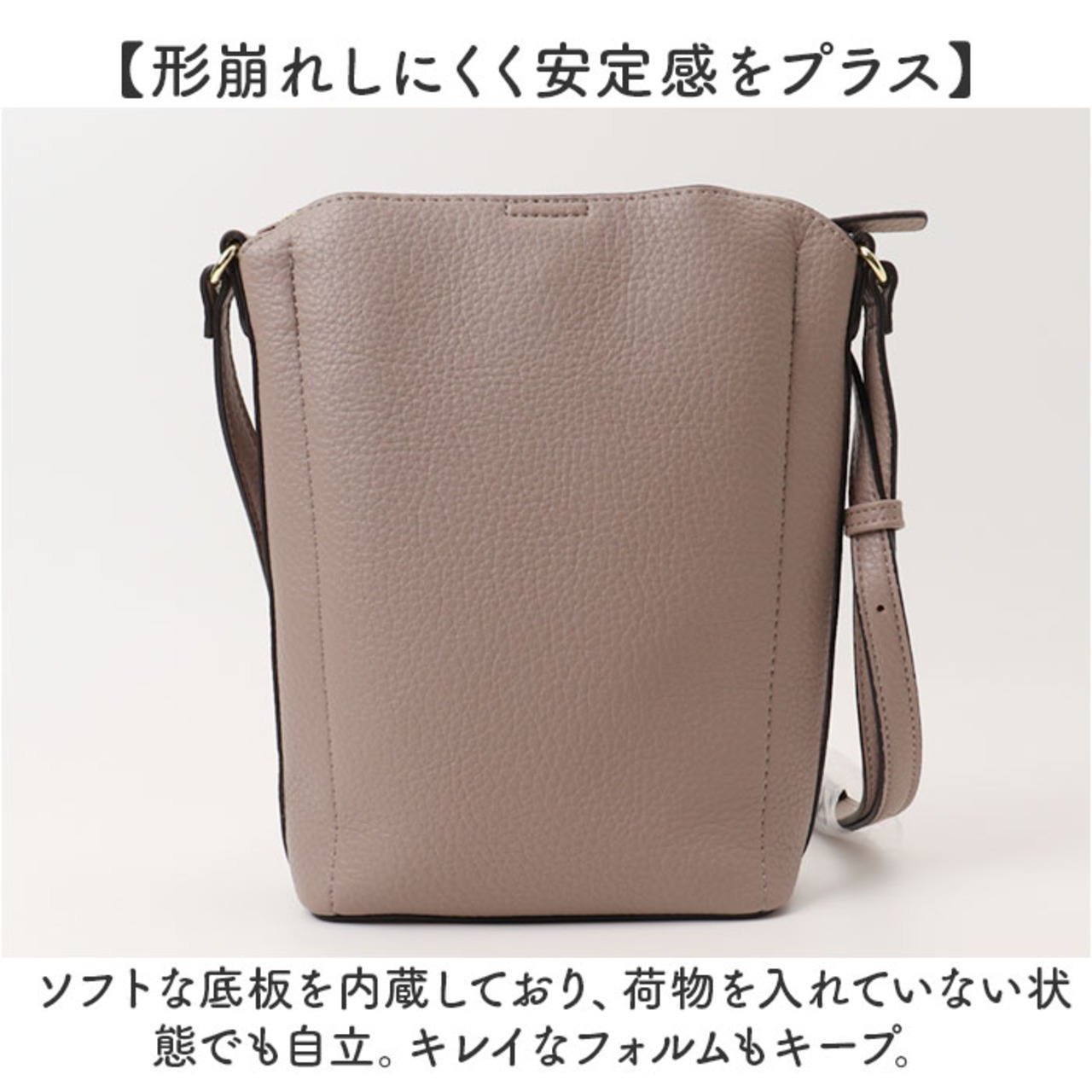 ・ソフトな底板を内蔵しており、荷物を入れていない状態でも自立。キレイなフォルムもキープ。