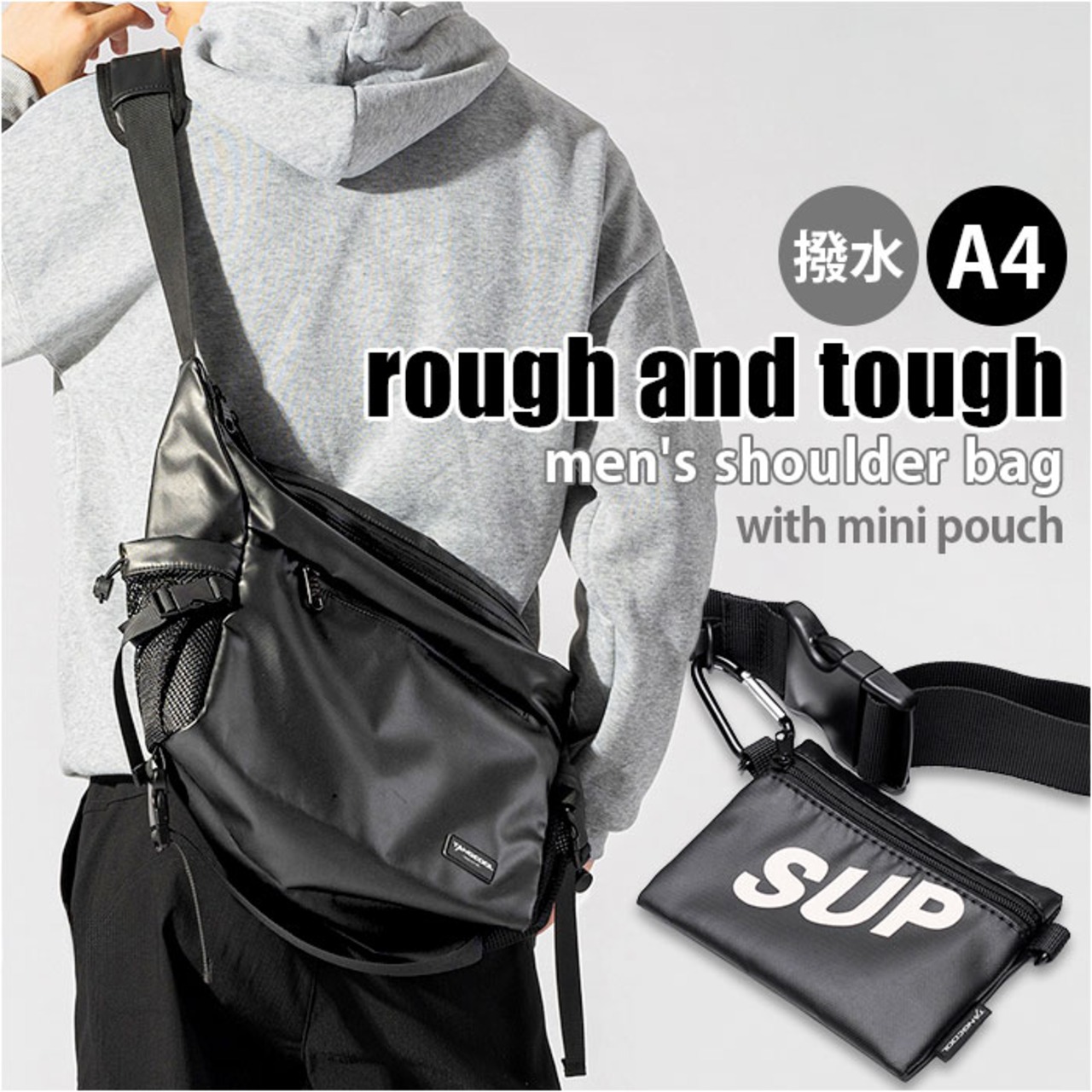 ・撥水素材で安心、収納力抜群のボディバッグ。